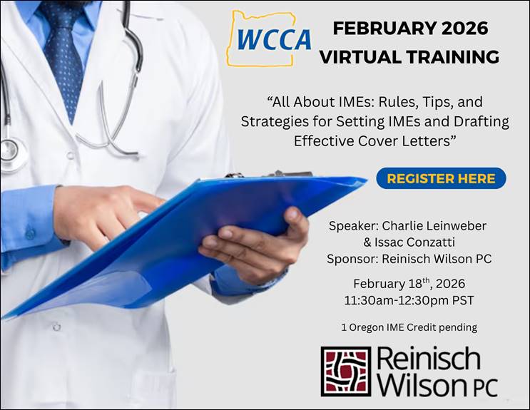 The Oregon Workers’ Compensation Claims Association (WCCA) is a professional organization whose mission is to provide education and training on issues relevant to the professional goals of those we serve